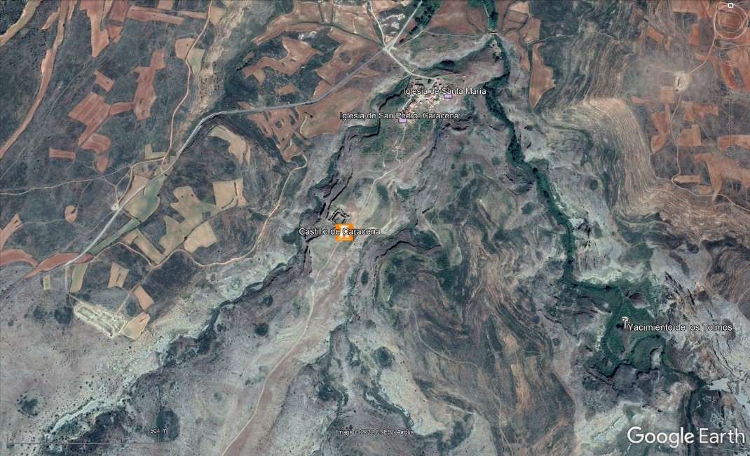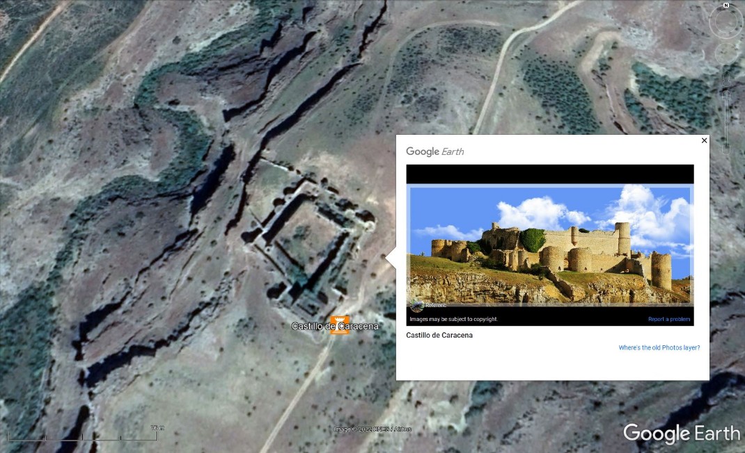 Ampliando aún más, llegaríamos al sitio concreto de nuestro interés. En este ejemplo, sería el evocador Castillo de Caracena: